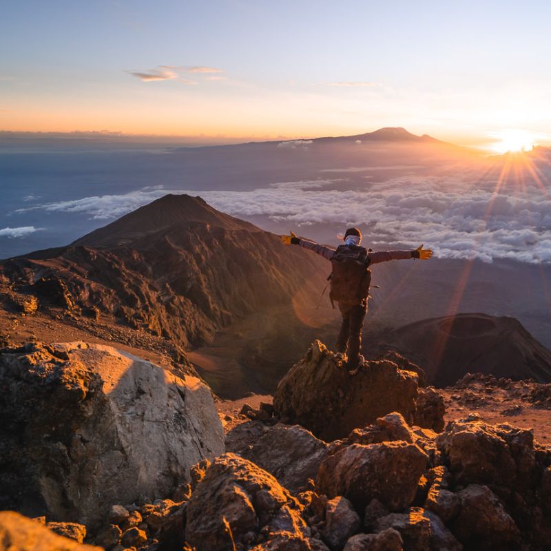 The ascent features dense forests, open moorlands, and an ash cone near the summit. From the top, climbers will be awarded stunning views of the surrounding plains and Kilimanjaro in the far distance.